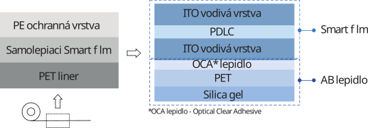 Samolepiaci PDLC Smart film je na jednej strane pokrytý adhezívnou vrstvou (AB lepidlom), ktorá sa používa na pripevnenie smart filmu k už nainštalovanému sklu. Je teda ideálnym riešením pre už nainštalované priehľadné plochy. V rámci kompletného riešenia vám dokážeme ponúknuť taktiež “cable management”, pri ktorom vám navrhneme ideálne spôsoby zakrytia káblov v rámci zapojenia smart filmu do už existujúcej elektrickej siete.